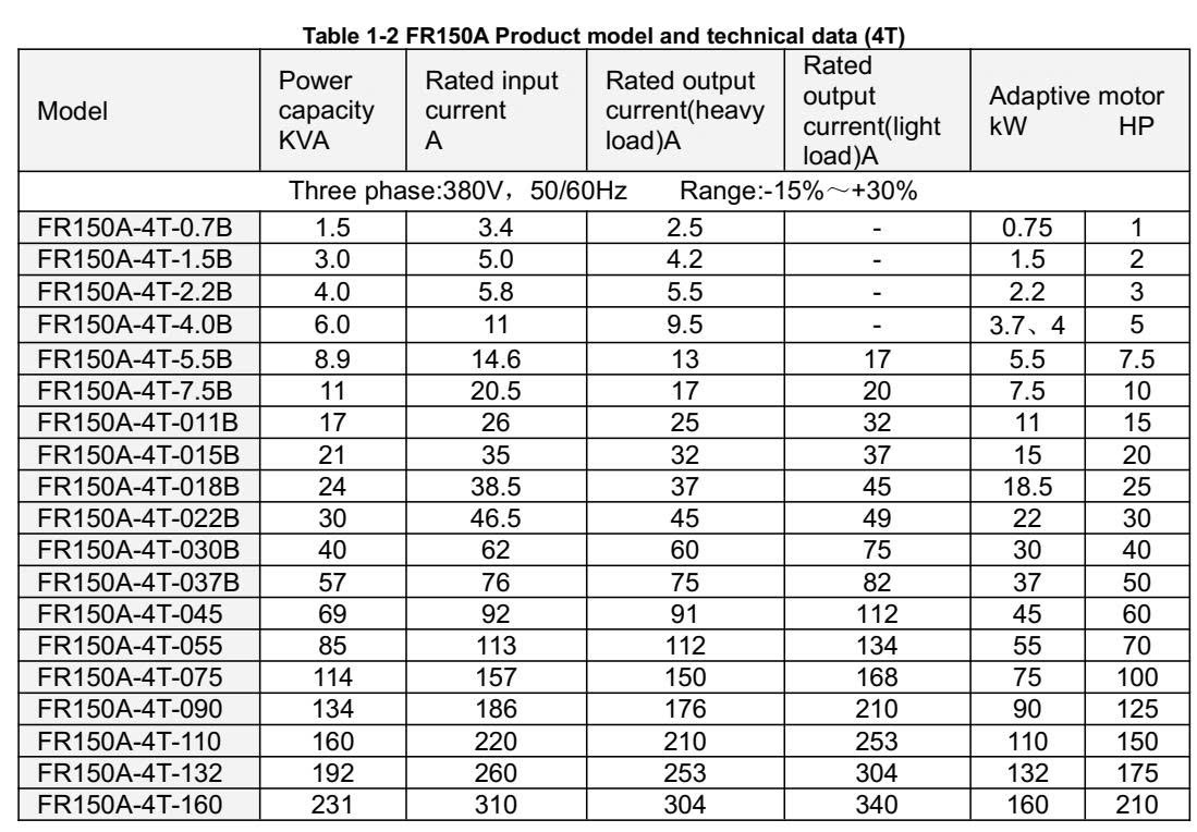 Model: FR150A-4T-1.5B