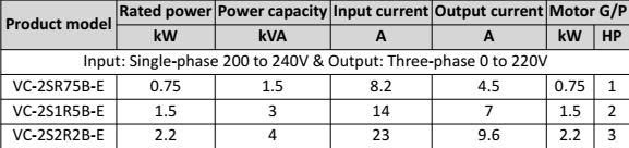 | Điện áp | Input 1 Phase 220V, output 3 Phase 220V |