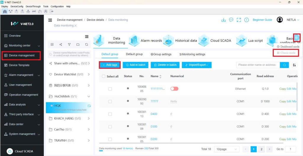 Phần mềm VNET Client 2.0 (phiên bản mới) dùng để điều khiển và thiết kế web scada VBox, HMI IIOT